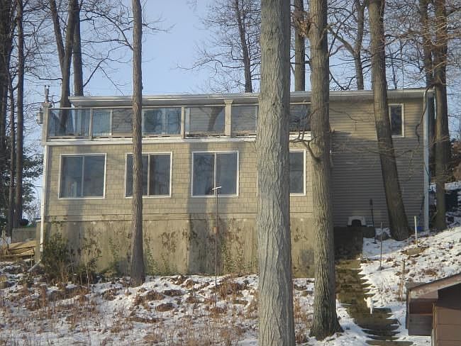 Here's a honey for the money. This year round lakefront home has some of the best views in the area. The home is very deceiving from the outside…..you really need to see the interior and then you can say, "Oh Wow!" Yes this has been 70% remolded throughout and shows great. The large main level master suite is lakeside with walls of glass to take advantage of the lake views. The walk in closet is large enough it could be another bedroom. The large ceramic walk in shower top off this suite. There are 3 more bedrooms and a full bath on the main level as well……The lower level is where you'll spend your time day dreaming…..again the entire front of the home is glass as well as along 1/3 of the sides to gain the panoramic views. The unique tile floor on the lower level is very impressive and almost looks like a hardwood, but it's not……the family room has a 3 sided gas log fireplace that is awesome for the cool evenings and makes this area just a fun relaxing place to be. The wet bar and wi