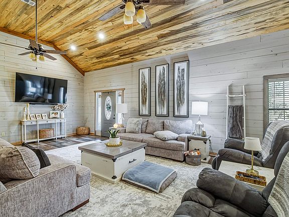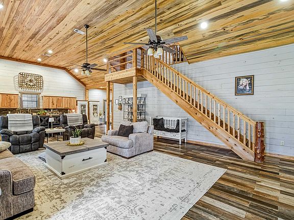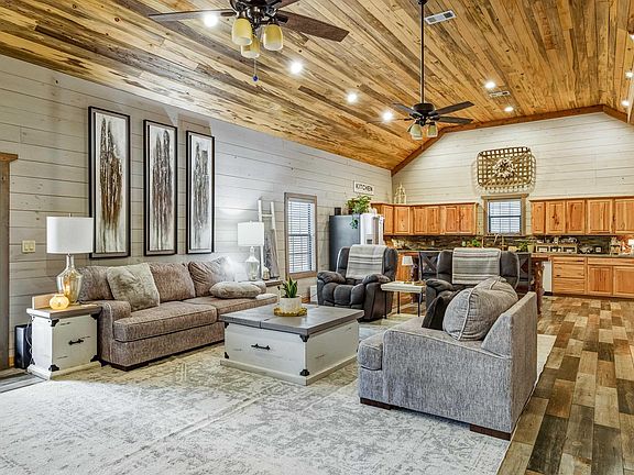 Experience the perfect blend of rustic charm and modern functionality in this beautifully maintained ranch-style farmhouse on a peaceful 2-acre parcel. With approximately 2,500 sqft of living space plus a 200+ sqft loft, this 3-bedroom, 2-bath home features rich cedar finishes, vaulted ceilings, and an open-concept layout ideal for both everyday living and entertaining. The gourmet kitchen includes custom cabinetry, ample counter space, and a large island for gathering. The spacious primary suite offers a walk-in closet and en-suite bath with dual vanities, a soaking tub, and a separate shower. Two additional bedrooms are served by a well-appointed full bath. Enjoy the outdoors from your covered back deck overlooking a serene, fully stocked private pond, perfect for fishing or relaxing in a peaceful setting. A standout feature is the 50x30 insulated, climate-controlled shop, fully equipped with electricity and plumbing, making it ideal for a workshop, home business, or future guest suite. The home also includes a tankless hot water heater, providing endless hot water and improved energy efficiency. Schedule Your Private Tour Today! Properties with this blend of land, craftsmanship, and amenities don't come along often — don’t miss your opportunity to call this extraordinary farmhouse your home.