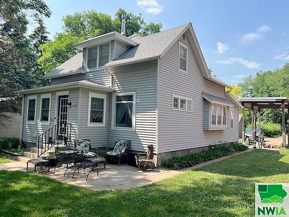This adorable one and a half story home is located in a picturesque area between the Forest Avenue Historic District and Jolley Historic District. It offers a cozy living space that is suitable for both first-time homebuyers or those looking to downsize. The main floor features a bedroom and bathroom just off the living room and kitchen. Upstairs, you'll find a hallway landing that can accommodate either a desk or seating area, two bedrooms, storage closets, and a delightful bathroom complete with a clawfoot tub. The basement provides ample room for additional storage needs. The yard of the property is compact yet efficiently designed. It boasts a covered patio, which connects to an oversized garage, perfect for hosting backyard gatherings. Additionally, there's a large concrete parking area and a covered RV spot equipped with electricity. For pet owners, there's a small fenced area dedicated to pets' needs. At the front of the house, there's a patio area where you can relax and enjoy the view of the Missouri River Valley and the beautiful mature landscaping of the neighborhood. The location of the home is highly convenient, with easy walking access to Historic Downtown and the campus of the University of South Dakota (USD). Inside the house, the main floor features a dining area with hardwood floors, and a charming kitchen. The living room is a welcoming space with a gas stove, a leaded glass window, built-in shelving, and abundant natural light. Overall, this home offers a blend of comfort, charm, and convenient amenities.