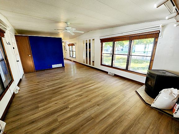 Great home in desirable Greenview Estates. Spacious corner lot includes shed. Large living room with wood burning stove and brand new flooring throughout the 2 bedroom home. Lot rent is $670 a month and that includes water and property tax! Affordable living and close to downtown amenities!