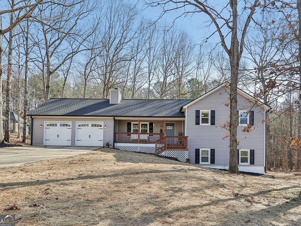 Welcome home to this spacious 4-bedroom, 3-bathroom split-level retreat on nearly an acre of serene, partially wooded property! Step through the front foyer, where the inviting family room awaits to your left, complete with a cozy fireplace-perfect for gathering on chilly evenings. Continue straight back into the beautifully updated kitchen and dining room combo, where modern finishes and ample space make mealtime a breeze. Sliding glass doors off the dining area lead to a large deck, ideal for entertaining or simply enjoying the peaceful backyard setting. To the right of the foyer, stairs lead up to the private bedroom level. The primary suite features a walk-in closet and an en suite bathroom with a shower. Two additional bedrooms share a full hall bath with a stylish shower/tub combo, making this level comfortable and convenient for family or guests. Head downstairs to the partially finished basement, where you'll find a versatile living space with built-in cabinets and shelving, a full bath, an additional bedroom, and a dedicated office-perfect for working from home or extra guest accommodations. The oversized laundry room offers extra storage, ensuring everything has its place. The home also boasts an oversized garage, a new roof, and a freshly seeded yard, ready for you to make it your own. Nestled on a generous lot with a mix of open space and wooded charm, this home offers both privacy and convenience. Don't miss the chance to make it yours-schedule a showing today!