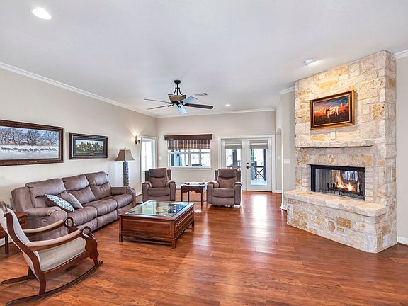 Beautiful Custom Homes nestled on 11.11 treed acres in the gated Ranches of Lost Mountain off Park Rd 4, minutes to Marble Falls or Burnet TX. The corner lot is partially fenced & has a gated drive to the garage & carport. This home features a covered front porch, screened rear porch, metal roof, two secondary bedrooms, office/bedroom with a sink/storage, three baths, game room with built ins, gourmet kitchen with an island, huge walk in pantry, oversized laundry with sink & storage, formal dining, breakfast area with a see-through fireplace to the family room and master suite-bath-closet to die for! Access the screened porch from the master suite, family room & office. Outside enjoy the Sunset & Hill Country Views, eat on the deck or relax by the pool. The detached 900 sq. ft. workshop is heated & cooled with room for all your projects or "Toys". Plus a 20'x30' Carport for additional tractor/RTV parking. The property goes beyond the wet weather creek and has a Wildlife Exemption for lower taxes!