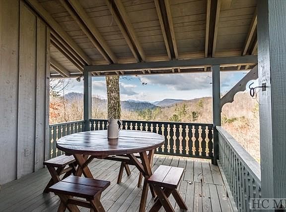 In Town Highlands "Classic" Arts and Crafts split level cottage on .94ac. Located at the top of Holt Knob with great long range SW views of the mountain ranges and spectacular sunsets. This 3BR, 2BA charming year around residence features on the main entry level: living room and dining area with wooden beamed Cathedral ceiling, hardwood floors, stone wood burning fireplace, huge window/long range views of the mountain ranges and gorgeous sunsets viewed from the inside or step outside onto the delightful covered deck plus the efficient kitchen with ample storage also features views of the outside deck and has its own doorway to the side yard and driveway. The bedrooms are conveniently located off the main floor living room and share a split level with 2BR, 1BA up with an outside balcony. Master BR and bath are on the lower level together with a separate cozy seating area and a doorway out to the 2 car covered carport. Walk to town, close to the post office, restaurants, hardware store and all the great in-town shops. Excellent rental income potential and the adjoining .99ac lot is for sale ( MLS # 87239 ). Come see for yourself !