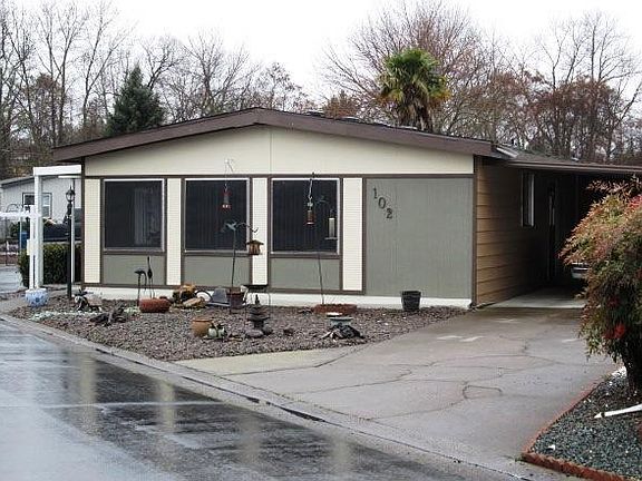 This very clean, well maintained 2bd/2ba home flows much larger than listed square footage would indicate. The main living area is spacious with lots of good-sized windows and light. Bathrooms have new matching vinyl flooring. The full featured galley kitchen has a dining area on one end and a built-in breakfast nook on the other. Home is in a 55+ park and sits on a corner space with a generous covered front porch and roomy carport. Park is conveniently located to shopping and nearby towns. Come tour this home today to fully appreciate all it has to offer.