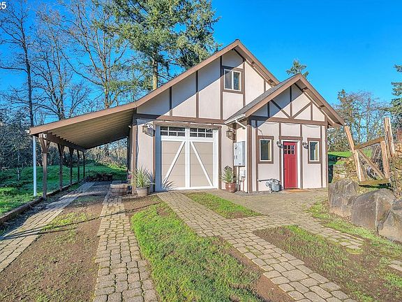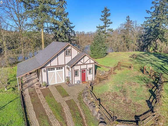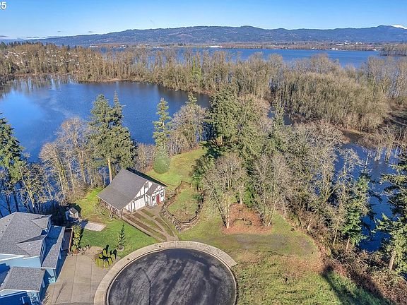 Nestled atop the bluff overlooking the serene Dalton Lake, this delightful .68-acre property offers breathtaking views, abundant wildlife and endless potential. Whether you’re captivated by deer grazing nearby, eagles soaring overhead or ships gliding down the distant Columbia River, this home provides a front-row seat to nature’s beauty. The 1-bedroom, 1.5-bath Tudor-style cottage is both cozy and unique. The open-concept kitchen/dining area features concrete floors, modern features sprinkled with rustic charm and large windows that frame the lake views. The upstairs bedroom overlooks the picturesque surroundings and is complemented by three versatile storage or bonus spaces, perfect for a walk-in closet or whatever you may need. A modern tankless water heater provides radiant floor heating, ensuring comfort year-round. The attached garage provides additional storage options and the carport offers extra parking space or room for a small RV or boat. Relax and enjoy your morning coffee while watching ducks glide across the lake or spend your evenings outside while you fire up the BBQ using the convenient gas hookup. This expansive property includes two lots currently treated as one, offering flexibility for future development. Build your dream home overlooking the lake and use the existing cottage as a guest house or ADU (buyer to verify with the City Planner). Located on a cul-de-sac with minimal traffic, this property offers a peaceful retreat just minutes from town. Whether you’re drawn to the charm of the existing home or the possibilities for the future, this is a truly unique opportunity. Don’t miss your chance to own one of the most intriguing properties in the area!