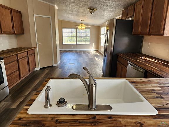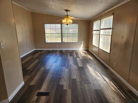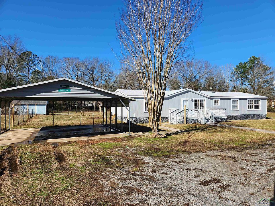Come see this recently updated home in the wonderful Waskom School District on nearly 2 acres. Its complete with 3 bedrooms, 2 bathrooms, a large living room, dining room, three porches and a storage building all on nearly two acres. The home has been updated with all new floor coverings, kitchen countertops, farmhouse sink, backsplash, paint inside and out, new cabinets in the kitchen and the primary bath, blinds and many more extras. The primary bath has a jet tub and his and hers vanities. Off of the primary bedroom is a bonus room that could be used as an office, a hobby room or a small child's bedroom. The back fence row has been cleared giving access to the whole 1.89 acres. A circle drive and carport finish the home nicely! Seller would consider owner finance with 15-20% down.