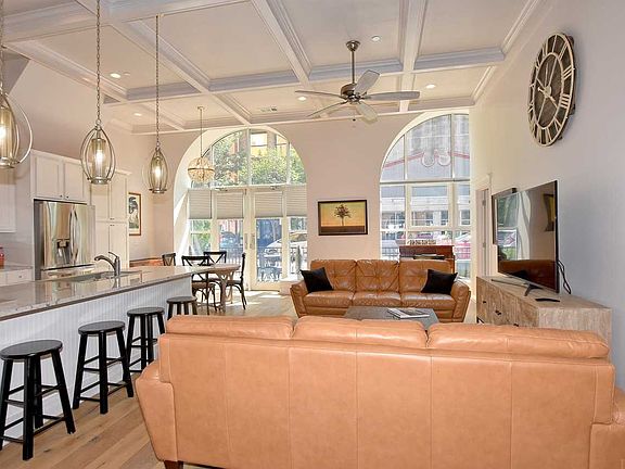 Located in the heart of Main Street in The Meridian Plaza, you will love this ground floor three bedroom, two bath condo with large windows overlooking Main Street. Interior glass walls wash the light through the space. 14' ceilings, beautifully intricate trim work, and wood floors create a great atmosphere. Enjoy a modern kitchen with granite tops, stainless steel appliances, gas cook top, and pendant lighting. Walk in custom showers and tankless infinite hot water to enhance the comfortable lifestyle. A fenced-in patio is located on Main Street right off the kitchen. Two designated parking spaces. Roof access with river view for entertaining and enjoying the outdoors. Dues cover geothermal, water, sewer, trash disposal, pest control, common area utilities and cleaning, and maintaining the building's infrastructure, security, and fire protection.