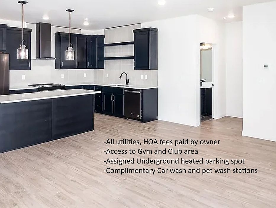 Landlord pays for all utilities and fees including electricity heat water sewer garbage wifi, and HOA fees that cover building maintenance, lawn care, snow removal. 1 dog 40 lb or less allowed, 1 free reserved underground parking spot assigned to the unit included, along with complimemtary access to the car wash station situated behind the assigned spot of this condo. There also are multiple free additional spots in the parking lot in front of the building.