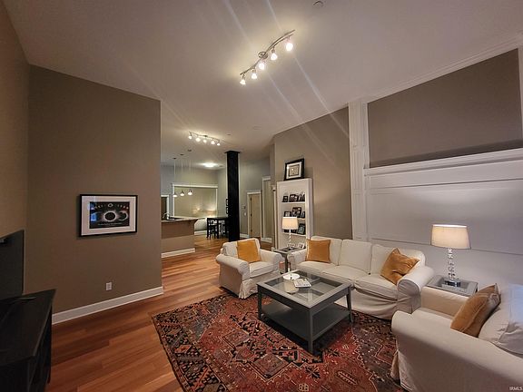Located in The Meridian Plaza at the corner of Main Street and Third, this beautiful first floor condo is loaded with character and is at the pinnacle of convenience. As you enter on the slate entrance, you are wowed by the character and charm of the high ceilings, original steal column, the hardwood flooring, the cool style and design. The floor plan is open with a large living area, dining area, and kitchen. The kitchen features granite counters, a breakfast bar, large stainless sink, and stainless appliances. The bedrooms are both nice sized with large closets. The laundry is centrally located in a closet with stackable washer and dryer. The bathroom has a glass shower, vanity and closet. The 2 designated parking spaces are just outside the door. The unit is being sold furnished and includes everything except the rug in the living room and the personal pictures. The HOA fee includes gas, water, trash, sewer, building maintenance, parking lot maintenance, and access to the rooftop.