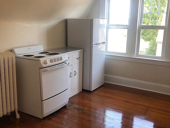Conveniently located Main Street building, close to train station, UNH, bus line, West Haven green. Efficiency style 1 bedroom, third floor walkup converted attic space. Hardwood floors, fresh paint. Coin operated laundry in basement, 24 hour maintenance. Cats only, no dogs. GOOD CREDIT IS A MUST. $50 application fee and GOOD CREDIT REQUIRED. Security deposit equal to 1 month's rent.