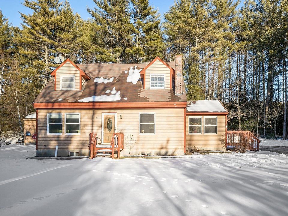 New Hampton, NH 03256 - Charming four bedroom, two bath Cape-style home situated on a private 2.14 acre lot with views of the surrounding mountains. Open-concept kitchen & living room, exposed wooden beams, plenty of natural light, ideal for everyday living and entertaining. The formal dining room has direct access to the back deck, and is a perfect spot for those special occasions. First floor bedroom, den/office and a full bathroom complete the lower level. Retreat to the Master Bedroom on the second floor, with vaulted ceilings and great natural light. Two other bedrooms with expansive mountain views and a second full bathroom finish off the second floor. Full basement and large shed provide plenty of storage space. Large, level yard provides a perfect spot to play, entertain, and garden. Minutes to the New Hampton School, and Exit 23. Close to restaurants, shopping, skiing, snowmobiling, golf, Newfound Lake, Lake Winnipesaukee, and many other Lakes Region attractions. Home is in need of TLC, and is being sold as-is. Delayed showings with an open house on Saturday, Jan. 15, 2022 from 11 AM - 1:30 PM.