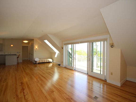 With stunning views of Rockland Harbor in the much-sought-after South End this 2 bedroom, 2 bath (all en suite) penthouse is truly spectacular. Rising above the city the deck provides outdoor living space above it all. Large kitchen with Dear Isle granite countertops and custom Bench Dogs Cabinetry. The first bedroom has a bathroom with a tub/shower combination and the second bedroom has a full bathroom with a shower stall. Hardwood floors, skylights, storage and in-unit washer and dryer. Owner to pay for trash removal, snow removal for parking space and water/sewer