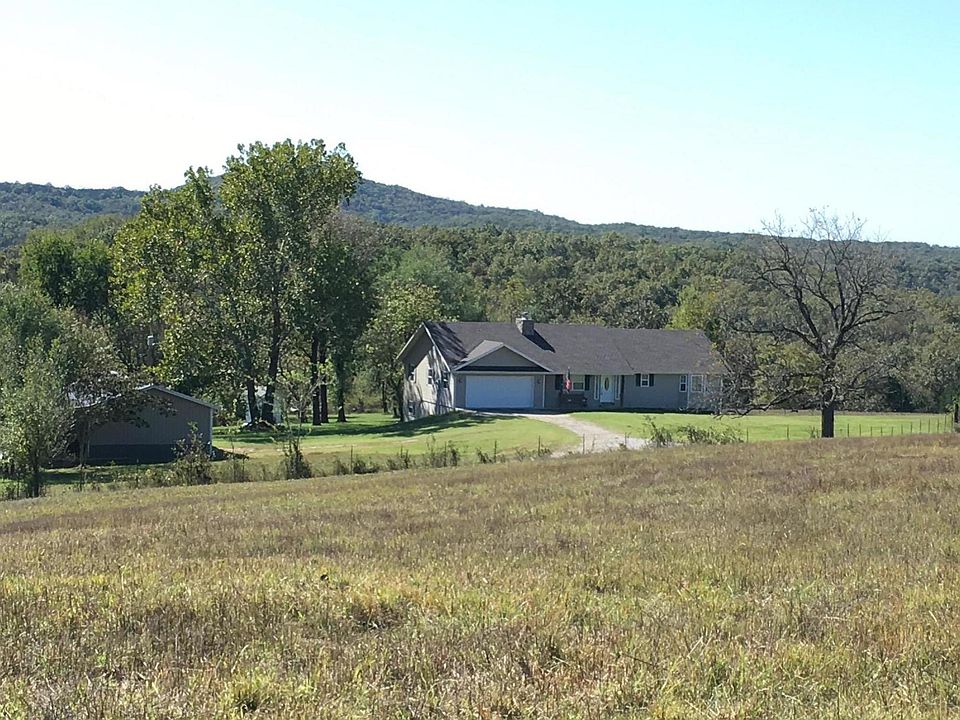 Peaceful country setting with 15 acres and long range views. If you love to hunt and fish you have the best of both world's with Beaver Creek and Conservation land being within walking distance. This home has 4 bedrooms and 3 full bath, walk-in closets, ample storage, large kitchen, newer Pergo Timber Craft flooring and a beautiful floor to ceiling rock fireplace in the living room. The full finished walkout basement has a family room with free standing wood stove, exercise area, game space for the kid's (lot's of living space), 2 bedrooms and a full bath. There is an attached two car garage and a detached 40 x 40 insulated shop with 220 voltage built in 2018. The land has 3 ponds, a spring and is about 1/2 pasture. It is an easy commute to Branson and just an hour drive to Springfield.