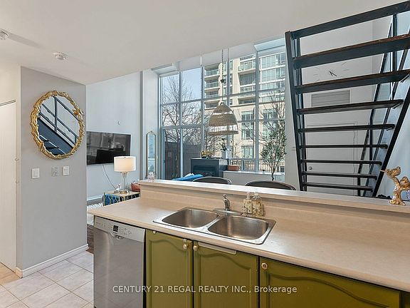 Welcome to the Merchandise Lofts! This Main Floor Manhattan Style Loft has a Huge Private Terrace. Open Concept Living Space On Two Levels. Features Approx 17' Ceiling, Floor to Ceiling Windows, Hardwood Floors, Gas Fireplace, Walk-Out To + 300 sq ft Terrace with Gas Hook-Up for Summer BBQ's. Awesome Location Situated Walking Distance To The Lakefront & Martin Goodman Trail, Mimco Go Station. Easy Access To Transit & Hwy's. Best Parking Space in the Building Included Plus Tons of Visitor Parking! Appointments 8am to 8pm.