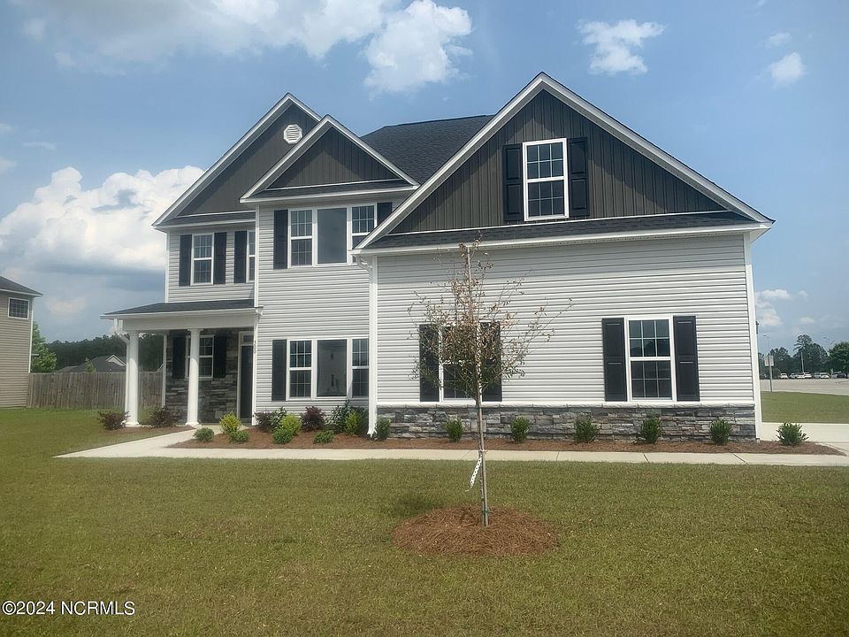 Welcome to Jacksonville's hottest new community, Stateside. Located off Gum Branch Road behind Stateside Elementary School. Stateside is 16 miles to Camp Lejeune, 12 miles to New River Air Station & minutes to area schools & shopping. Upcoming community amenities will include clubhouse area & community pool. Welcome to the Laura 3307, total 5 bedrooms & 4.5 bathrooms. Main level master & second floor master. Approx. 3307 heated square feet. The quaint front porch awaits your hanging baskets. Enter through the impressive 2-stoyer foyer. Formal dining room as you walk in & a kitchen that any cook would love. Featuring flat panel, staggered cabinets, an island & stainless-steel appliances to include a smooth top range, dishwasher & built-in microwave. Enjoy your morning coffee in the breakfast nook. The spacious family room, approx. 22x15 features a ceiling fan and a fireplace with a custom mantel. First floor master suite with a walk-in closet & a master bathroom that is perfect for guest. The main master suite is upstairs, approx. 19x15 with additional sitting area, walk-in closet, ceiling fan & a luxurious master bathroom featuring separate vanities with cultured marble countertops, full view mirrors, ceramic tile floors, separate shower & soaking tub. Bedrooms 3, 4 & 5 all have walk-in closets. Upstairs laundry room. 2-car garage & a covered back porch. NOTE: Floor plan renderings are similar and solely representational. Measurements, elevations, and specs may vary in final construction. Limited selections for buyer to choose. Call L/A to verify.