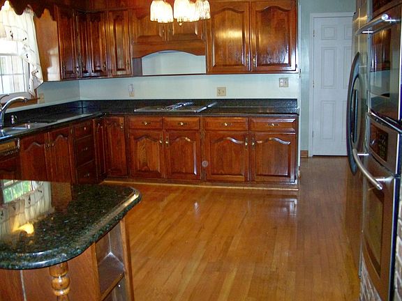 Quality brick home has cherry kitchen cabinets, stainless steel appliances, granite counters, oak & tile floors, 2 fireplaces (one with antique oak mantle), 3 garages - 2 car attached, 2 car detached and 1 car built-in. Bedrooms have oak floors. Basement 50% finished with rec room, study and bath. Basement is dry with lots of storage and a wood furnace. Dimensional shingles on roof, brick and block foundation, large covered patio off of family room and patio off of rec room. Lots of amenities!