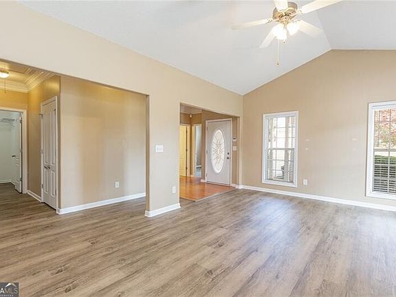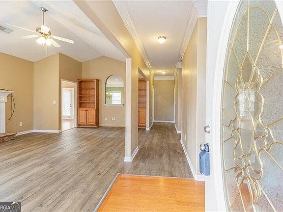 Impressive stone ranch w/rocking chair front porch on just under 1 acre corner/cul-de-sac lot! Hardwood foyer and formal dining room! Vaulted fireside great room w/built-in bookcases is viewed by spacious island kitchen w/stained cabinets. Refrigerator included. 9' ceilings through-out. Upgraded trim package. Master w/trey ceiling and garden tub bath. ALL bedrooms feature walk-in closets! ALL electric - low utility bills! Covered porch overlooks fenced backyard. Pets are negotiable. Convenient to Shopping right off 316 - Home Depot, New Kroger Coming Soon, Target, Movie Theater and lots of restaurants. Copyright Georgia MLS. All rights reserved. Information is deemed reliable but not guaranteed.