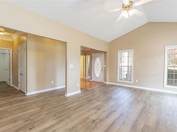 Impressive stone ranch w/rocking chair front porch on just under 1 acre corner/cul-de-sac lot! Hardwood foyer and formal dining room! Vaulted fireside great room w/built-in bookcases is viewed by spacious island kitchen w/stained cabinets. Landlord can provide a refrigerator if needed. 9' ceilings through-out. Upgraded trim package. Master w/trey ceiling and garden tub bath. ALL bedrooms feature walk-in closets! ALL electric - low utility bills! Covered porch overlooks fenced backyard.