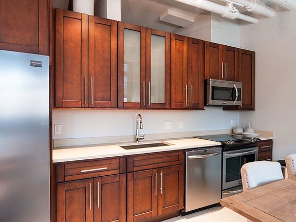 Here is your chance to live in a Former wool factory converted into 121 units. Brick, beam and steel accents, high ceilings and terrazzo floors, large windows and combo washer/dryer in all units. 3500 sq.ft roof deck with grilling area will open in spring and LL is planing to have wine store in the building.cats $25 p/m dogs under 40lbs $50p/m dogs over 50lbs $75p/m no restriction on size but they have breed restrictions$175 garage parking (no oversized vehicles)$125 surface parkingUtilities with exception of electricity, cable and internet are included.$1000 to reserve the apartment which will become security deposit + first months rent.Unit are not available until 12/15/14 NO broker fee is associated with the rental of the loft
