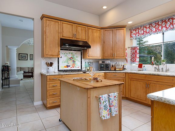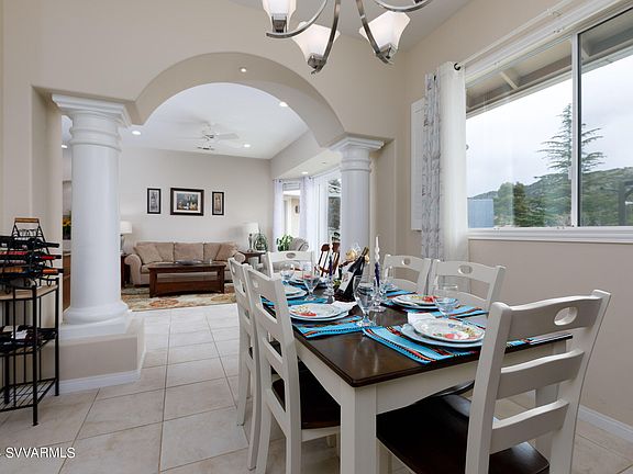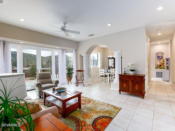Welcome to your private retreat in Sedona, Arizona, where sophistication meets comfort at 300 Michaels Ranch Drive. This stunning 2,610 square foot residence, built in 2004, welcomes you with its timeless elegance & impeccable attention to detail. Home has 3 bedrooms plus a large craft room or extra sleeping area. As you step inside, your eyes are immediately drawn to the stately columns & exquisite tile floors that stretch throughout the home, creating an atmosphere of understated luxury. Custom wall tile installations in the showers and kitchen, meticulously crafted by the original owner, add a unique touch of artistry to every corner.