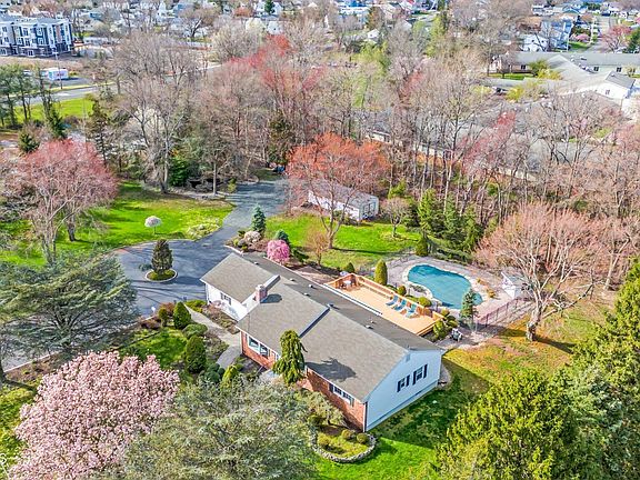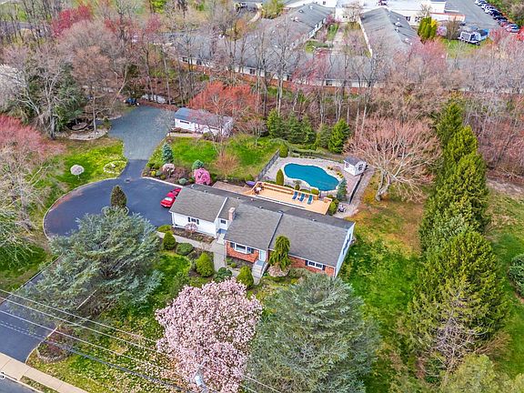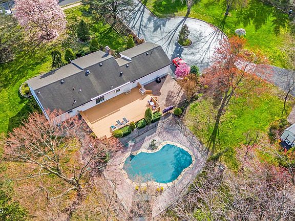Nestled in a serene, highly desirable neighborhood, this elegant 3-bedroom, 2-bathroom ranch home offers unparalleled charm and functionality across a sprawling 1.25 acre lot. A circular driveway welcomes you into a world of refined comfort and outdoor splendor, setting the stage for a property that truly feels like a private retreat. The exterior grounds are a highlight of this magnificent property, featuring an inground pool that promises endless fun and relaxation during warmer months. A two-car garage with a storage loft further complements the home's extensive offerings, ensuring ample space for vehicles and additional storage. As you step inside, you're greeted by a warm and inviting atmosphere, punctuated by a spacious, eat-in kitchen that serves as the heart of the home. This culinary haven is equipped with plenty of room for dining and entertainment. The huge deck, accessible from the kitchen, overlooks this oasis offering an expansive outdoor living space perfect for gatherings, al fresco dining, or simply soaking up the tranquil surroundings. The residence features a nice sized master bedroom complete with a master bathroom, ensuring a private and peaceful sanctuary for the homeowners. Two additional nice-sized bedrooms provide comfortable accommodations as well. A full finished basement presents a versatile extension of the living space, boasting additional storage solutions and potential for various uses such as a hot tub room, recreational room, home office, or gym. The property also includes multiple sheds, catering to all your storage needs and hobbies, from gardening tools to outdoor equipment. This ranch home embodies the perfect blend of comfort, style, and practicality, offering a lifestyle of ease and luxury. Its expansive lot, thoughtful layout, and amenities are a testament to quality living in an idyllic setting. Ideal for commuters with the NYC bus located a short distance away at the corner!