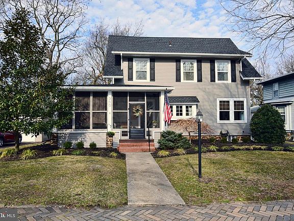 Turn of the century charm meets modern living in this beautifully updated Colonial in historic Riverton. Approaching the front of the home, take in the brick paver sidewalk, landscaping, new paint, and new roof and gutters (2018). Enter into the inviting wrap-around sun porch with its exposed rafter ceiling, wood flooring, and ceiling fan. You will want to spend warm days out here relaxing with a book, hosting friends and family, or just taking in the quiet. Proceed through the three-panel front door into the living room. Original refinished hardwood flooring runs throughout the home with the exception of the kitchen and hall bath. Lots of original features remain throughout, including the living room~s old world style stone wood-burning fireplace and nine-pane casement windows. Two paths lead out of the living room; off of the front is the light-filled dining room with an original built-in glass door cupboard for extra linen and cutlery storage. The two-way stairs in the back of the living room lead to the updated kitchen which features tile flooring, full tile backsplash, new granite counters, generous cabinet space, beverage cooler, and new stainless appliances. The wood-topped island with extra seating and the nine-pane back door lend historic touches to this modernized space. The second floor offers three bedrooms, each with original hardwood flooring and ceiling fans. The main bedroom has its own updated bath with wainscoting, a glass-enclosed stall shower with subway tile and built-in niches for storage, and a marble-topped vanity. The full hall bath has a tub/shower combo with tile surround, tile flooring and natural light. The third floor offers a 4th bedroom with rosette molding, angled ceilings, wood flooring as well as an attic storage space. There is still more to see here! Head to the partially finished basement where you will find a play area, entertainment area, half bath, laundry, and new HVAC (2015). The charm continues in the back yard, where the