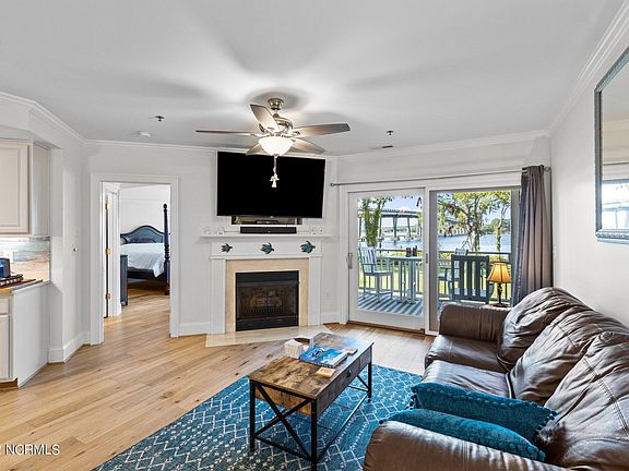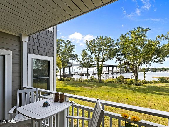 Enjoy life by the creek in this stunning waterfront 3-bedroom 2 bath condo in the Village of Oriental. (This property could potentially be a great rental investment in this highly sought-after community!) A major plus in this community is that the HOA fees encompass a lot of the typical costs of homeownership. This includes water, sewer, trash removal, recycling, internet, cable, pest treatments, street lights, maintenance on parking lot, exterior of the buildings, elevator, fire alarms and landscaping, pool, stormwater management, as well as a master insurance policy, common area insurance (the owners only pay insurance on their unit contents), legal/accounting and common area taxes.This first-floor unit is light and airy with engineered wood floors, freshly painted cabinets, and beautiful Italian tile backsplash. Features also include a downdraft gas range, garbage disposal, Corian countertops, and gas log fireplace. The spacious primary bedroom features water views from the plentiful windows, a sizeable walk-in closet, and an ensuite. A covered porch offers wonderful front row seating for the community fireworks and Pirate Jam, as well as many other local activities. Community amenities include an inground pool and grill. All appliances have been replaced, with the exception of the stove, which was new, and the hot water heater that is only a couple of years old and still under warranty. The HVAC was replaced in 05/2021. Ceiling fans and light fixture in dining area have been replaced, as well. Walking distance to restaurants, shops, and the local brewery. The town's public boat access ramps are conveniently located on the neighboring lot making it the perfect location for the person that wants to enjoy our year-round boating and coastal waters.