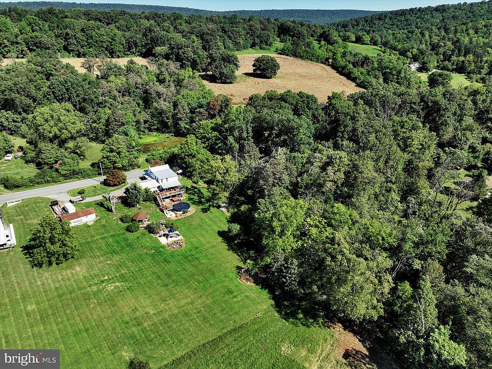 This early 1900s log home was the original farm house to the surrounding area. Made of hand hewn hickory logs, this home has been partially restored upstairs and down . Rough cut hemlock beams were shipped from western Pa and used as needed, to preserve the rustic character and charm built into homes of that era. This property is located in a quiet country location, it is quite common to look out the window and see deer and other wildlife passing through. The lower level of the home offers an eat in kitchen, enclosed front porch , and 120sq ft office adjacent to the family room. The upper level of the home features exposed log interior walls, 3 bedrooms including a large primary bedroom with walk-in closet, and custom lighting fixtures. Laundry is also located on the second floor, along with an oversized shower with dual shower heads. Just open the glass doors from the family room out to the large deck, with approx 1000 sq ft of space to enjoy the endless views of the surrounding countryside. Hot tub and above ground pool are located on the lower level deck, along with a stocked koi pond, making the outdoor area an ideal spot for entertaining. New roof recently installed, and this home also offers three different heat sources!