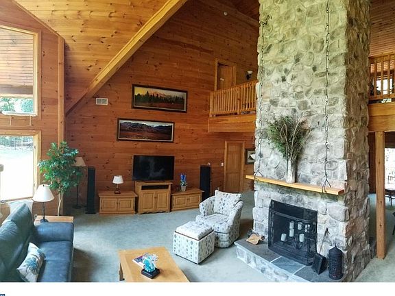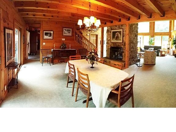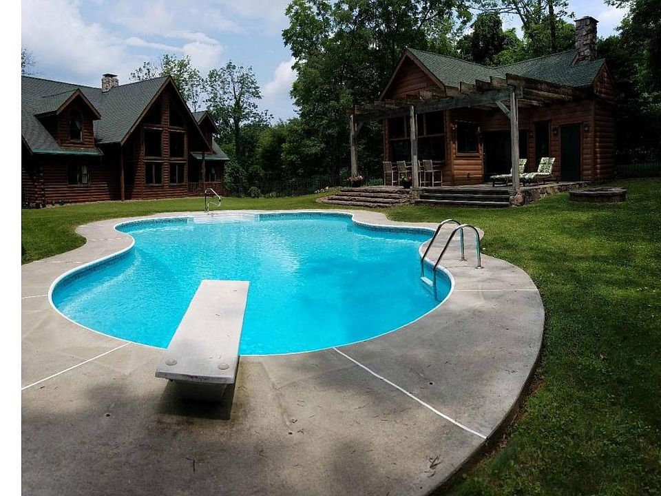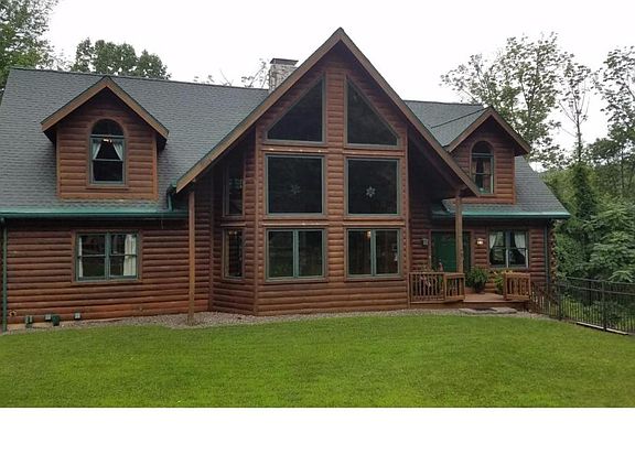 Celebrate Nature in this Spacious Custom Log Home on 3 1/2 Private and Secluded Wooded Acres with Potential for Spacious In-Law Suite. Marvel at the Great Room's Soaring Ceiling to 28 Feet that Emphasizes Spaciousness with a Wall-of-Windows and Southern Exposure for Passive Solar Heating. Enjoy the Large See-Through Fireplace between Living Room and Dining Room with Custom Wrought-Iron Mantle. Beautiful Kitchen Featuring Custom Cherry Cabinets, Granite Counter-tops, a Large Island with Sink, Bookshelf, Wine Rack, and a Custom-Stained Glass Sliding Window between Kitchen and Sun Room. Grand Master Suite with Separate Soaking Tub and Shower. Lovely Heated, In-Ground Pool with a Custom-Designed Pool House Featuring a Half-Bath, Stainless Gas Grille, Sink, Fridge and Wood Stove. Large 3-Car Garage with Work Shop Area, Storage Shelving, and a Large Car Port. Special Features include: Canadian White Pine Construction, Central Vacuum, Internet, Phone and Cable Network Wiring in All Rooms and the Pool House, Radiant Heat Throughout, Master Suite with Separate Soaking Tub and Shower, Professional Landscaping, Automated Generator connected to 1,000 Gallon Propane Tank, Upper Level Laundry Room play-house, 1-car Detached Garage, Woodshed, and Storage Shed, Goldfish Pond with Water Lilies and a Driveway that Includes a Circle Area for Delivery Trucks or for Extra Parking. Included with the home is a John Deere 4 wheel drive Gator with a hydraulic snow blade that is very useful for yard work and plowing snow. It is only 3 years old and was purchased new for $16,000.