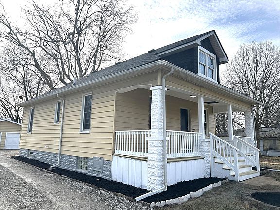 Welcome to this beautifully updated 3-bedroom 2-bathroom gem! Boasting fresh curb appeal with new garage doors and charming covered front porch. Kitchen with updated cabinets, flooring, quartz countertops and stainless appliances. Updated lighting throughout . The upstairs has a large bedroom and office/sitting area with new carpet. Full basement with updated full bath and additional open space. Some other updates include roof on the house, both baths, paint throughout the interior and vinyl windows. Additional partially finished space in basement can be used as a Rec. room. Oversize 2 car detached garage.