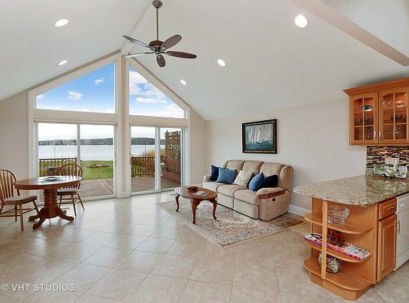 Spectacular lake views on desirable Silver Lake. Beautiful 2 bedroom, 2 bath home, completely redone and rebuilt in 2011. Nothing to do but move in and enjoy. Redone with the finest finishes and quality workmanship. Enjoy the sunrise on sparkling Silver Lake!! Perfect getaway, or year round living. Vacation lifestyle every day. First floor living with complete guest quarters on the 2nd level. Home has been completely redone past the studs, nothing left to do. Beautiful quality finishes. owner was master painter/tradesman. Could not duplicate this home. Views of the lake are stunning. Low maintenance, and move in ready, what more could you ask for. Very open floor plan. Wall unit Murphy bed on 2nd story is negotiable. Most furnishings could be purchased for a fully furnished property.