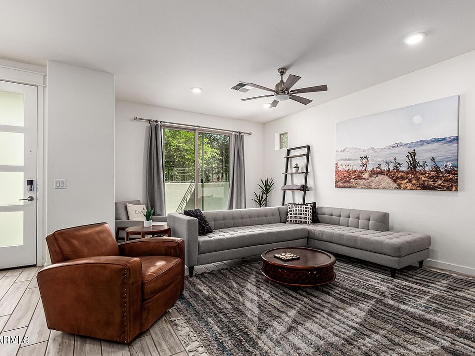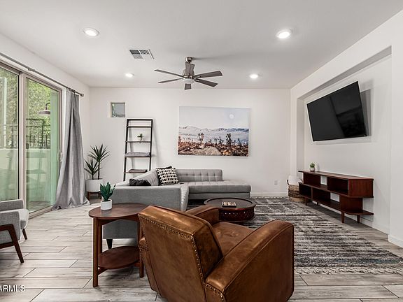 Discover this stunning townhouse in the heart of Chandler, offering the perfect blend of style, comfort, and convenience. Bright, open living area with beautiful wood-look tile throughout. The gorgeous kitchen is complete with a classic subway tile backsplash, sleek quartz countertops, and stainless steel appliances. The spacious primary bedroom boasts a huge walk-in closet, a double vanity, and a large shower, creating a true retreat. A separate laundry room adds practicality, while a charming balcony and a cozy patio finished with artificial grass and pavers provide inviting outdoor spaces. Enjoy access to a sparkling community pool and spa, perfect for relaxing or entertaining. This exceptional home is a must-see!