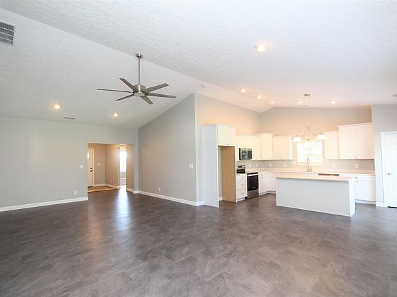 This exceptional new construction ranch with 3 bedrooms/2 baths rests on a large 0.33-acre lot with mature trees. A welcoming foyer leads to an open-concept living area with a vaulted ceiling and stylish, low-maintenance laminate flooring. Beautiful kitchen with stone countertops, staggered cabinets with crown molding, and a breakfast bar. Desirable split bedroom floor plan. Expansive backyard and an oversized garage. Only a short distance to the Colfax Community Park and the scenic trail to Thorntown. Easy access to larger cities as Colfax is a halfway point between Lafayette and Indianapolis.
