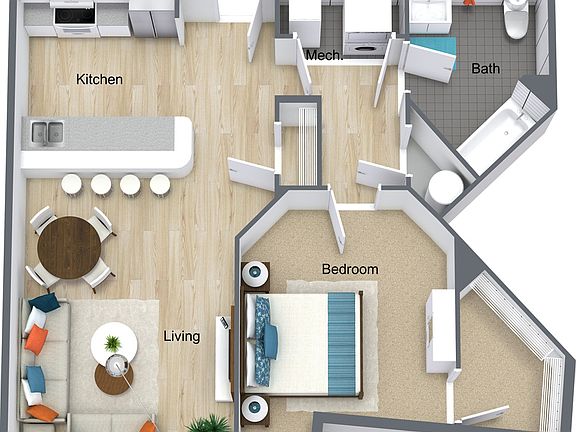 - Bedrooms: 1