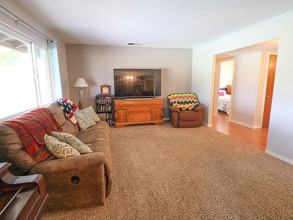Ranch Style Living At Its Best With 3 Bed/2 .5 Bath, Barn W/Upstairs Studio Apartment, POOL, 1.2 Acre Lot, Tesla Solar, Located in NE Area W/Loads Of Storage! This home features newer paint, red brick fireplace, tile counters, breakfast bar & nook, ceiling fans throughout all bedrooms, step-in shower in the master bathroom, covered patio, water well w/newer pump installed, 500 gallon gas tank owned, not leased, two separate septic systems Various fruit trees, pebble tech pool, volleyball area. The barn is the original Strathmore Schoolhouse with separate electric bill from the house, studio also has its own entrance, kitchen, 3/4 bath, built in storage throughout the barn & in the basement. This home is a must see!