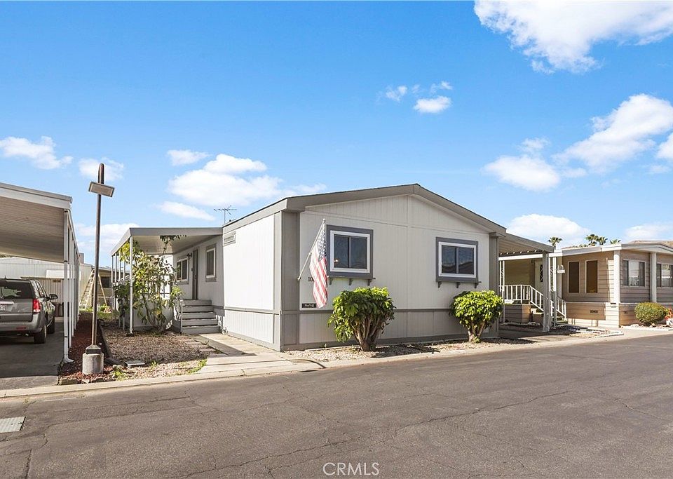 Come and see this beautiful 1991 Mayfield model manufactured home that awaits you in the Park Royale Community in Orange. A family park with no age restrictions. This 1,560 sqft home with finished textured walls throughout and vaulted ceilings is complete with 3 spacious bedrooms, two bathrooms, separate living and family rooms, fireplace and an indoor laundry room with ample storage. Open eat-in kitchen is perfect for entertaining guests and offers additional seating at the kitchen island and separate dining area overlooking the common areas. Master suite has an ensuite bathroom and offers a spacious vanity, stall shower and a wardrobe closet in bathroom and a separate walk-in closet located in the bedroom. Additional features and upgrades: new wood-like laminate flooring in family room, new carpet throughout, updated central heat & air, dual pane windows, large covered front porch where you can sit and enjoy your morning coffee or fireworks from the Angel Stadium, two car carport and a tuff shed w/ loft for additional storage space. Side yard is complete with gravel but would make a great area where you can garden. Monthly space rent is: $2,200. Utilities are sub-metered. Clubhouse and park amenities include: Pool & spa, recreation room(s), billiards room, car wash area, RV and boat parking and a dedicated area for your four-legged pet. Refrigerator, washer and dryer are an added bonus that are also included in sale. This commuter-friendly home is between the 5 and 57 freeways and close to dining/shopping and amazing attractions: Angel stadium, Honda Center and Disneyland. TOO MUCH TO LIST! A must see!