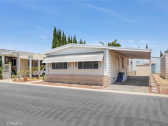 Beautifully Maintained & Move-In Ready Home in the Heart of Orange Nestled in the Sought-After Community of Orange Village Mobile Home Park! This Spacious 3 Bedroom, 2 Bathroom Manufactured Home Has it All—Comfort, Style, and Convenience! Step Inside to Find Fresh New Paint, Brand New Carpeting, and a Wonderful Open Floor Plan That Makes This Home Feel Light, Bright, and Airy! The Large Living Room Flows Seamlessly Into a Spacious Dining Area and Updated Kitchen—Complete With White Cabinets, Ample Counter Space, Built-In Gas Cooktop, Double Oven, and Stainless Refrigerator! Enjoy the Timeless Layout That’s Perfect for Everyday Living and Easy Entertaining! The Expansive Primary Suite Offers a Generously Sized Closet, Dual-Sink Vanity Area, and Direct Access to a Private Full Bathroom! Two Secondary Bedrooms are Also Spacious and Ideal for Guests, a Home Office, or Hobby Room! Additional Full Guest Bathroom with Tub/Shower Combo. Step Outside to Your Covered Front Patio—Perfect for Morning Coffee or Hosting Family BBQs! The Covered Carport Offers Room for Two Vehicles, and There’s Also a Storage Shed for Your Gardening Tools, Holiday Décor, or Workshop Needs! Enjoy a beautifully maintained and clean environment featuring a welcoming clubhouse, a securely fenced pool, and a true sense of community. Welcome Home!