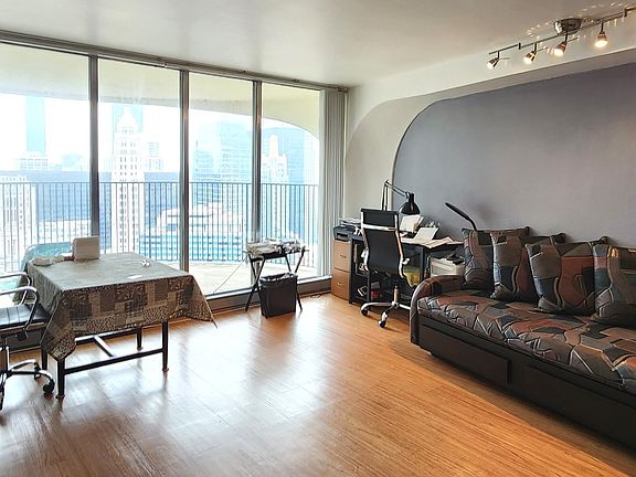 Live on the 49th floor for the Iconic Marina Towers. This 1 Bed Condo features floor to ceiling windows; a spacious combo Living/Dining Room; 2 Private Balconies showcasing views of the Lake, City, and River; and a kitchen with dishwasher. Basic CABLE and INTERNET included in rent. Building perks include-24 hr door staff, breathtaking roof top- A great Place to watch the Navy Pier Fireworks and a 360 Views of the City, common laundry, Storage, marketplace and fitness center. Easy access to the CTA Buses as well as the Red, Orange, Blue, Brown, Green, Pink and Purple Lines. A quick walk to Chicago entertainment, restaurants and River Walk, You are in the center of it all. Non-Smoking Apartment. Come see this unit today.