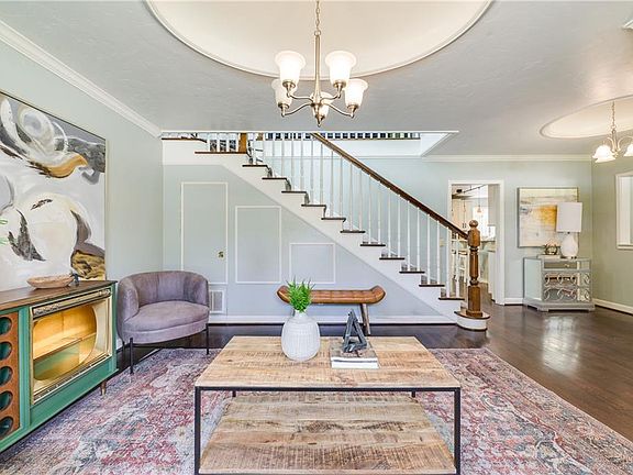 Wonderful stacked stone ranch on incredible lot in Edgemere Heights! Located on close to half an acre, this creekside wooded oasis features a versatile floor plan with multiple living spaces and many updates! Formal living and dining areas with amazing hardwood floors throughout. Open concept kitchen and family room over looks the backyard and leads to a sun room perfect for morning coffee. First floor primary suite has renovated bathroom and great closet space. Second downstairs bedroom with hall bath access. Second level features landing space with built in banquet perfect for a work space or study. Second primary suite located on the 2nd floor is large enough to have another living area in addition to sleeping quarters. It also features a full bath and ample closet space. The backyard is complete with arbor and vast pool. There is also a storage building-earth shelter that has a very peaceful rooftop patio overlooking the creek. Don't miss this special property!