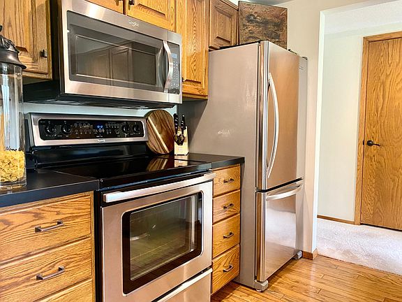 Stunning 3 bedroom/ 3 bath home in immaculate condition. This lovely home features a large welcoming foyer and as you continue on to the main floor features include kitchen with dining area and large sliding door out to maintenance free deck and lower level paver patio for easy entertaining ! Spacious living room. 3 bedrooms on main level and including a large master bedroom with private three-quarter bath with walk-in shower and an additional full bath on main floor. Lower level includes family room with stone accent wall and stone fireplace, laundry room with storage and 1/2 bath. Also, large additional storage room with shelving for all your storage needs Oversized double garage with overhead storage and easy outside access for storage. Excellent location on edge of town with abundant wildlife out your front window. This home has it all! Small town living at its best!!