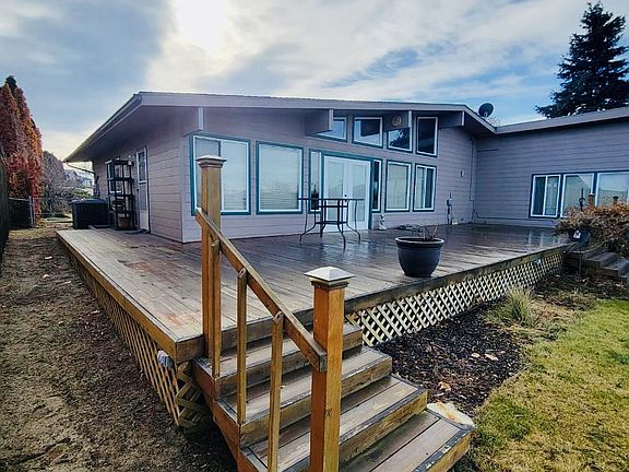 Enjoy a Columbia River view in your 2440sqft home on .48 acres! Mid Century Modern vibes with tons of natural light. 3beds & 2 full bath. Attached to the master bedroom is a sitting room that includes a bar/coffee station. Vehicle access to the back gives plentiful parking. Mature landscaping & timed underground sprinklers. Concrete pad in backyard is a tennis court; bring it back to life! Just a quick call or text to view.