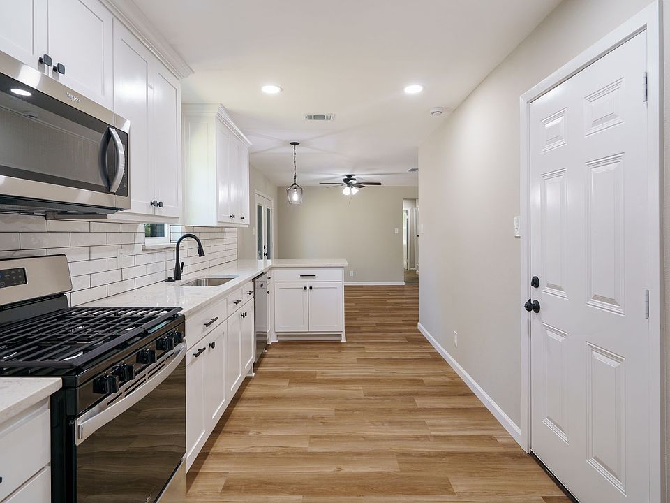 Welcome to this beautifully renovated 3-bedroom, 2-bath home with a 2-car garage, located in a desirable Burleson neighborhood. Inside, you’ll find quartz countertops, custom cabinetry, stainless steel appliances, and a gas stove in the modern kitchen. The home features gorgeous wood-look laminate flooring, fresh carpet, and abundant natural light through brand-new windows. Major updates include a new roof for added peace of mind. Outside, mature trees provide shade over a spacious backyard complete with a storage shed—perfect for relaxing or entertaining.