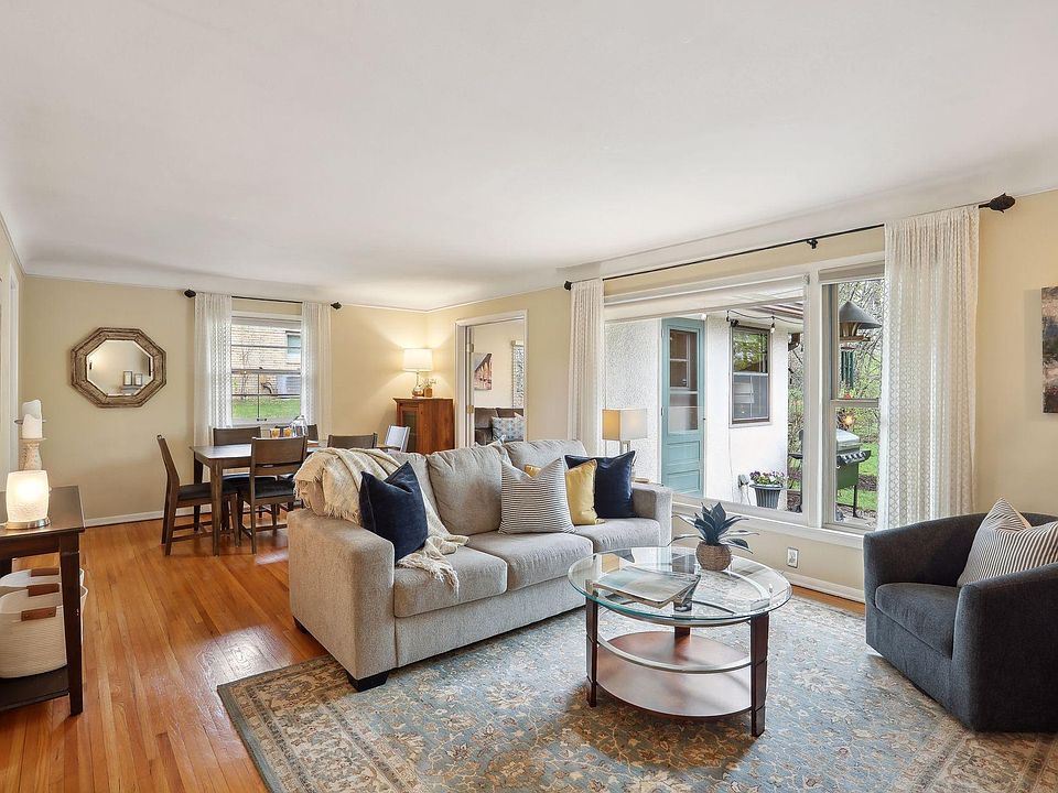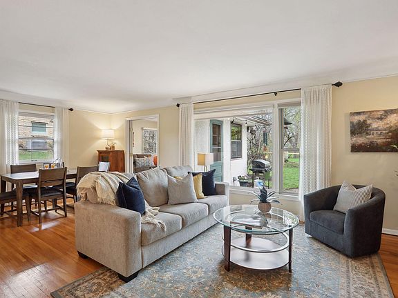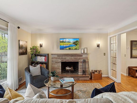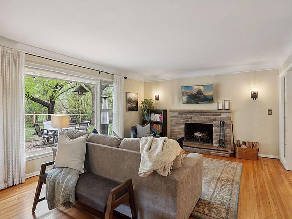 Bright and cheery Tyrol Hills rambler on a surprising, private .45-acre flat site with lush lawn and mature trees! Stylish interior with fresh updates! Great living room features an original fireplace, coved ceilings and oversized windows and has attached dining room. Stainless kitchen offers plenty of counter and cabinet space, complete with a breakfast nook. Darling sunroom/office with built-in bookshelf has access to the patio and yard, perfect for BBQ’s, entertaining, and play! Three great bedrooms on the main level including a large walkthrough primary bath with soaking tub and walk-in shower. Host movie and game night in the lower-level family room, which has enough space to add a 4th bedroom, if desired. ¾ bath, super-functional laundry room and mudroom, too! Deep garage has a side-mounted garage door opener allowing additional height for full-size vehicles. Enjoy year-round outdoor fun with Wirth Park just down the street, as well as West End, Meadowbrook and Breck!