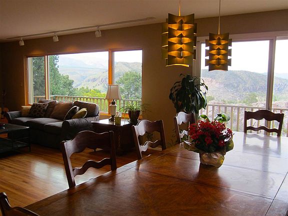 This is one you've been waiting for! Spectacular views of Deer Trap Mesa, the Sangres de Cristos and the Jemez Mountains welcome you from your spacious back patio and yard. Inside, this lovely four bedroom, three bathroom home is imminently livable and huge windows throughout bring those gorgeous views inside! Walk in the front door to an open floorplan and take in the mountain and canyon views from almost every window. The living room, dining area, kitchen, master bedroom and family room all face Deer Trap Mesa. Light streams into the house, making the hardwood floors throughout glow. Danish shelving and light century adds to this beautiful home's mid-century charm. In addition to the main living spaces upstairs, on the lower level is a brand-new bathroom with a walk-in shower. Also on the lower level is a beautiful family room with patio doors that step out to your almost-new hot tub. There is also a large laundry/sewing room with tons of storage, an office with its own large window and a heated, unfinished room that could be a music room or hobby space. There are 500 square feet of heated, unfinished areas on the lower level. The backyard of this third-acre lot is fully fenced and has a sprinkler system, a garden area and tons of play room. A gate at back provides private access to the gently sloping trail into Barranca Canyon. This home is very, very special, is in immaculate condition and waiting for you!