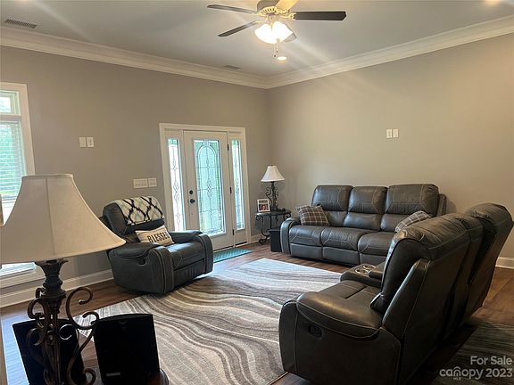 Make Memories at the Lake! Immaculate, custom ranch home built in 2020 is waiting for your family! (Certificate of Occupancy was issued March, 2021) Three combined lots (1.3 acres) with one HOA fee! Front porch is perfect for rocking chairs. Open living area with Split bedroom floor plan! Many upgrades! Tray ceiling with crown molding. Custom cabinets in kitchen with an island and granite tops. Stainless steel appliances, including french door refrigerator. Huge laundry room with pull down drying rack and custom cabinets with sink. Covered three car carport (778 sq. ft.) with ceiling fans and recess lighting can easily be used for outside entertaining. Short ride to pool/clubhouse as well as boat ramp, Matching site built storage building is perfect for lake toys and tools. Woodrun is a gated community with community clubhouse that has beautiful view of Morrow Mountain, pool, walking trails, leased boat slips, boat ramp/landing, tennis/pickle ball courts. A Must See!!!