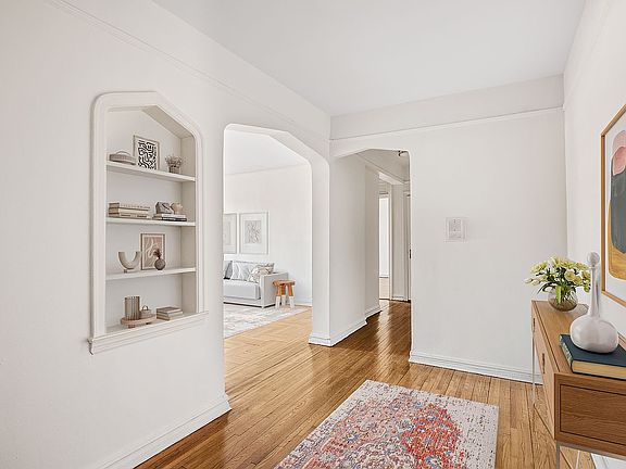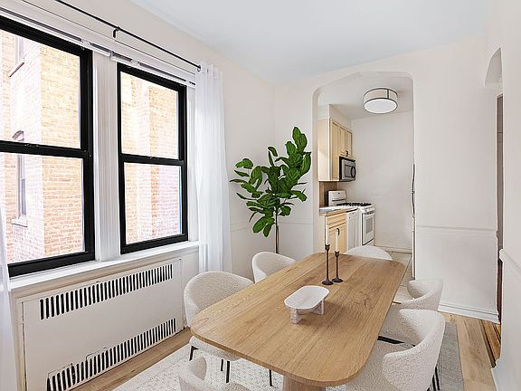 Recently refurbished, the entire apartment features fresh paint, refinished floors, and new lighting, making it move-in ready. Upon entering, you are greeted by a welcoming foyer that leads to an open and airy layout. To the right, you'll find a well-appointed kitchen with a separate dining room, perfect for hosting meals. To the left, the expansive living room offers ample space for a full living room set and a formal dining area.