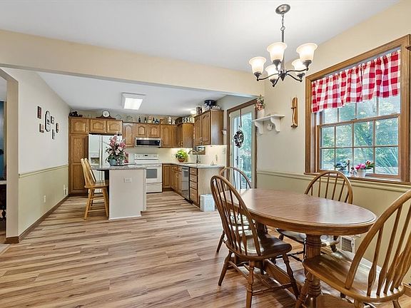 Enjoy the peace & serenity of this charming cape cod home on almost an acre lot. Lavish landscaping & inviting front porch greet you on arrival. Inviting entry & great floor plan welcome you & lead to large LV that features gas FP & large windows that allow tons of natural light into the space. Open concept KT & DR allow for easy entertaining & meal prep. Beautiful KT w/glowing oak cabinets, granite countertops & island. Hardwood floors & neutral color palette carry you into dining area. Main level living for your convenience w/1st floor master bedroom w/double closets & is adjacent to updated full bath. 1st floor laundry completes this level. Upstairs are 2 great sized bedrooms w/large closets & another updated full bath w/tub shower combo. Plenty of space for relaxing & gathering w/friends & family in LL w/pellet stove, ½ bath & completed by mechanical & storage room. Off KT, easy access to the tranquil setting from the privacy of rear deck overlooking expansive back yard & pond.