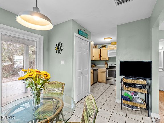 Come see all this home has to offer in a prime location on the island, just minutes to the beach and a short walk to restaurants and shops. This end unit has 3 bedrooms, 2.5 baths, and a recently updated kitchen with stainless appliances! Outside, you'll enjoy a large, partially covered patio that offers privacy surrounded by the tree line. Listen to the waves from your back porch! Carteret County school district. Conveniently located between both military bases, short drive to Swansboro, and Morehead City!