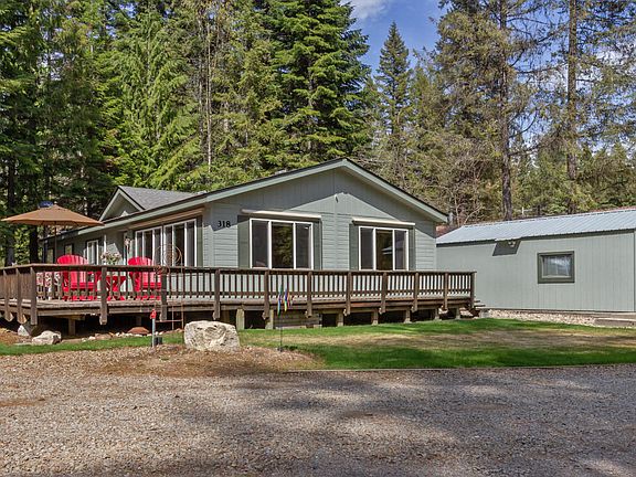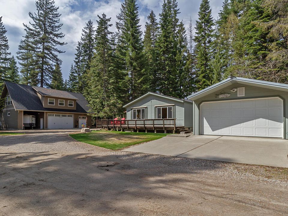 Amazing multiple family opportunity with deeded beach access and boat slip! .5acre lot with easy access at the end of the road. Exceptionally well maintained 3bd/2ba 1994 manufactured home with partial views of Priest Lake from the oversized deck. Remodeled kitchen with open floor plan. Detached 1 car garage with concrete floor! PLUS an adorable 3bd/2ba carriage house! 1090sqft bright and beautiful living space with plenty of room for all your toys below! Hardyboard siding and LVT flooring. Top of the line appliances and LED lights! RV spot and outside storage for boat trailer, snowmobile or ATV's! Exterior lighting, private wooded yard and grassy lawns. Both homes set up for winter use. 50ft of sandy beach access and dock with boat tie up space!