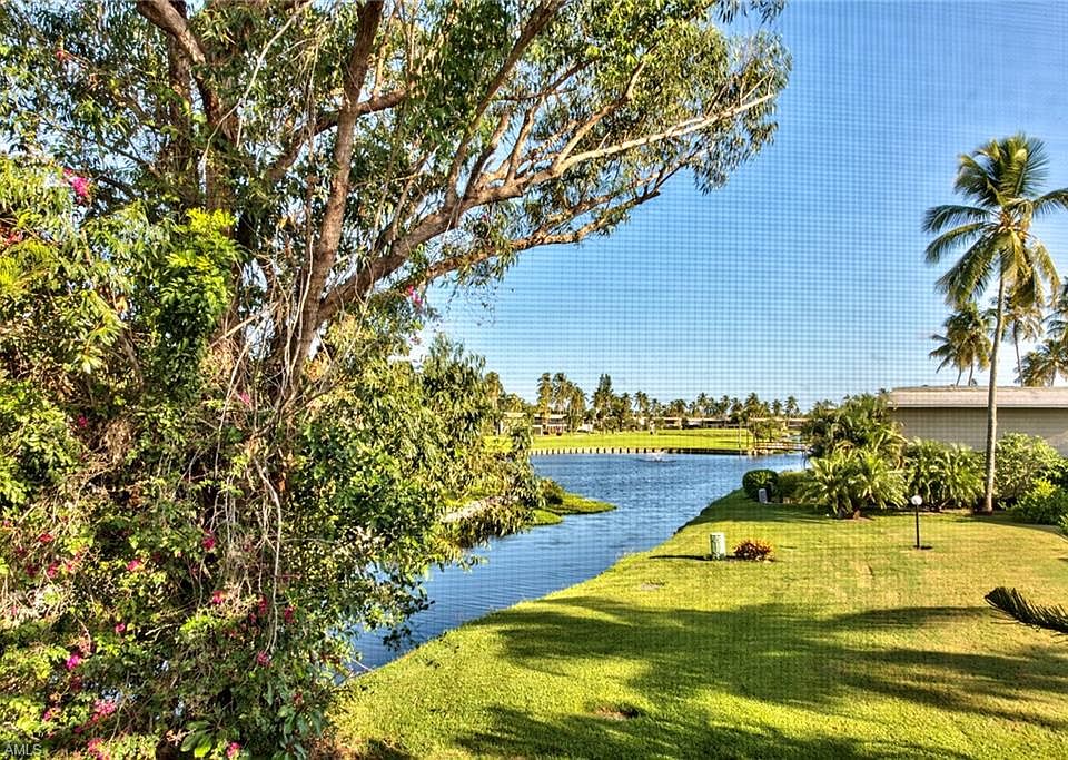 Tropical Décor and a Golf Course View! This 2 bed/2 bath condo in a Bundled Golf Community has been updated to a West Indies style and has a 33x10ft Screened Lanai looking past mature pines and bougainvillea up the 13th Fairway of The Pines Golf Course. Interior features include crown molding, chestnut flooring, a jetted tub in the guest bath, and a tankless "on-demand" water heater. The Glades Golf and Country Club has many amenities that include: 9 community pools, 10 tennis courts, Bocce, Yoga classes, water aerobics, 19th Hole Restaurant, Clubhouse, and Pro-Shop. Very convenient location only minutes from downtown 5th Avenue shops, restaurants and the white sand beaches of Naples.